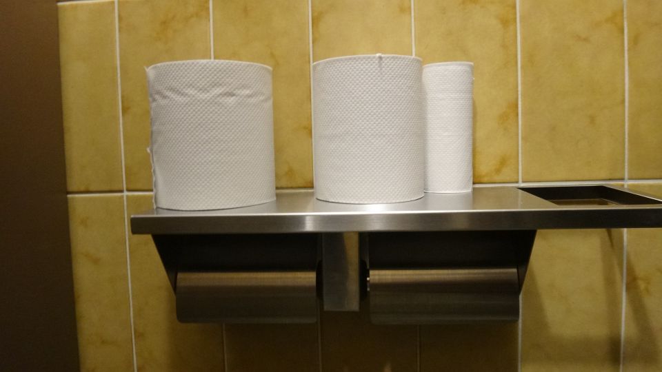- トイレットペーパーホルダの上にトイレットペーパーが・・・